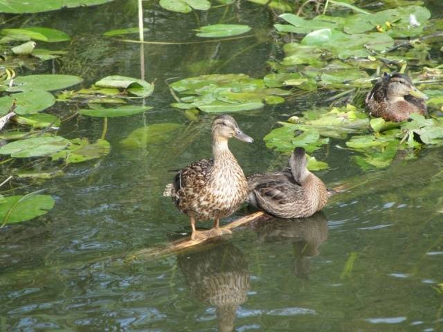 На фотографији су дивље патке. Али кућни љубимци се често потпуно не разликују у боји. Дакле, ако се домаћа патуља придружи крду дивљих патки, тамо ће је бити немогуће пронаћи. Осим ако одбегла патка не буде пегласта или бела.