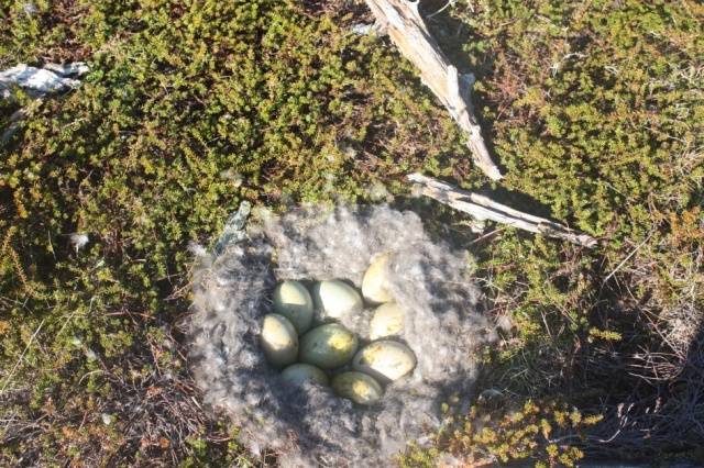 Патка почиње да полаже јаја директно на голу земљу. Док патка полаже јаја, један комад дневно, успева да сакупи суву вегетацију за гнездо. Понекад се, са вишком грађевинског материјала, гнездо уздиже и над земљом, попут дивље браће.
