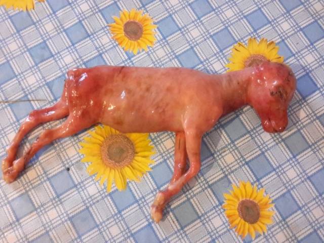 На крају, коза или овца умиру забачене главе и испружених ногу.