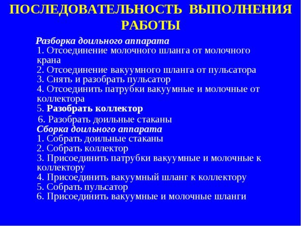 - након завршетка процеса, брадавице се дезинфикују, опрема се опере;