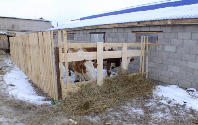 Обично се држање крава у стајама обавља на индустријским фармама. Корали су подигнути од цигле или бетона. За велики број грла користи се вишередни распоред тезги. Два реда су повезана испред са хранилицом или иза пролаза за стајњак. Сваки ред садржи до 50 оловака. Између сваке две тезге за одрасле бикове организован је пролаз ширине 60-75 цм.