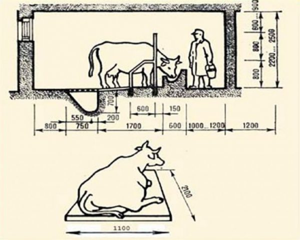 Димензије тезге одржавају се у складу са стандардима. Ако је одлучено да се изгради двострани одељак за телад, онда они организују пролаз ширине 1,5 м. Висина плафона је направљена од 2,5 до 3 м.