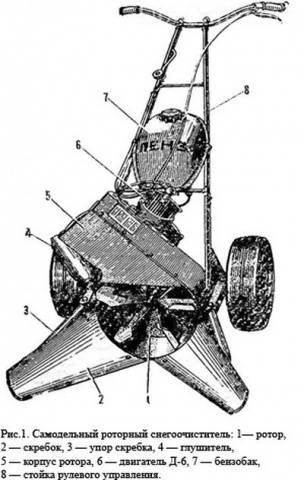 Од механичких уређаја за чишћење снега сопственим рукама, ротациони снежни плуг је веома популаран. Његов дијаграм се може видети на фотографији.