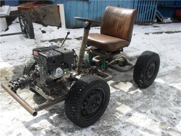 Даље Уради сам мини трактор треба да инсталирате добар међуосовински размак и управљање.