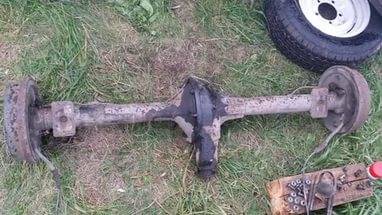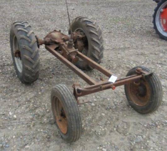 Задња осовина мини трактора је погонска. Боље је узети из старог путничког аутомобила. Можда ћете морати да контактирате токара да бисте смањили осовинска вратила. Предња осовина не вози. Овај склоп се може направити од комада цеви постављањем лежајева на крајеве или на сличан начин уклонити са старе опреме.