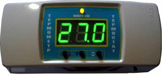 Вишенаменски термостат дизајниран је за контролу влажности и температуре у инкубатору. Уређај се не плаши скокова напона у мрежи, плус додатно контролише аутоматско окретање јаја. Све информације са сензора приказују се на дигиталном дисплеју.
