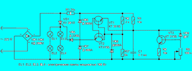 Да бисте направили домаћи термостат за инкубатор, морате бити у стању да читате електронско коло, користите лемилицу и разумете радио компоненте. Ако постоје таква знања и материјали, онда можете покушати да саставите транзисторски контролер, где се као грејач користе четири жаруље са жарном нити. Фотографија приказује једну од ових шема термостата за инкубатор, али на Интернету можете пронаћи друге, сложеније опције.