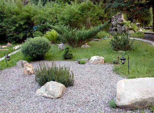 - Покушајте да се прилагодите терену локалитета приликом планирања побољшања локалитета. Није потребно све грабљати и равнати. Често је у осамљеним угловима већ створен природни пејзаж, у којем се биљке осећају пријатно, расту и добро цветају. Камење које је израсло у земљу служиће за дизајн клизалишта, водопада, оригинала ивица цветног кревета.