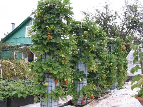 Поред тога, висеће и вертикалне конструкције могу играти улогу у дизајнирању стаза и прелаза са једног дела локације на други. Пример је баштенски лук украшен ћелијама, у које је засађено биље или грмље јагоде.