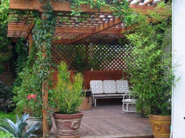 - Могу се користити покретни паравани и решетке. Решетке и стационарне ограде такође изгледају оригинално. Ове структуре могу бити украшене биљкама за пењање.