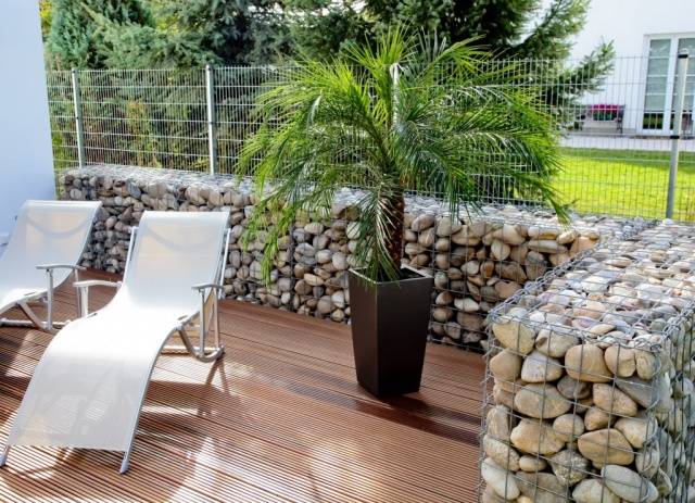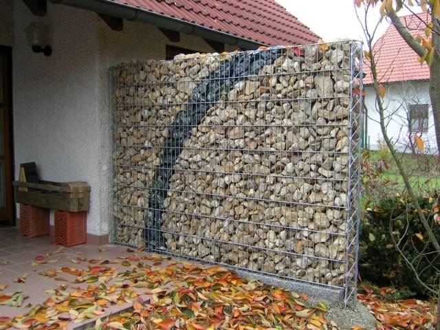 - Дуг радни век... За оквир се користи поцинкована мрежа од нерђајућег челика. Ако следите технологију производње, готови габион може трајати и до сто година. Штавише, током читавог оперативног периода габиони неће изгубити визуелну привлачност. Осим ако временом нећете морати да замените пунило, на пример, дотрајало дрво може се заменити камењем.