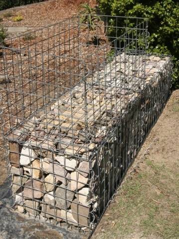 Под габионима подразумевамо посебан контејнер направљен од металне мреже. То јест, за габионе је потребно направити оквир од мреже, а затим их напунити једним или другим материјалом. Разнолики материјали могу деловати као пунило, укључујући: