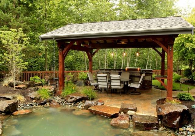 Ако често имате госте, онда водите рачуна о присуству роштиља, роштиља и слично. У овом случају моћи ћете не само да угодно комуницирате, већ и да узмете укусну храну кувану преко ватре. Размотрите локацију такве зграде тако да дим углавном не одлази у рекреацијско подручје, већ иде ван њега. Ово ће промовисати добро окружење.