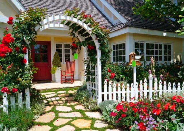 Ако сте романтични у срцу, онда можете уредити предњу башту у овом стилу. Овде постоје све врсте лукова, а цвеће / биљке треба да оплете све ограде. Штавише, цвеће треба да буде дуго цвеће и лепо.