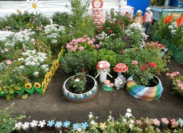 Овде је неопходно користити велики број цветних цветова и дрвећа које расте у малим контејнерима. Можете инсталирати све врсте скулптура, лампиона и другог декора. Мора постојати клупа, сто и мала надстрешница за заштиту од сунца и кише.
