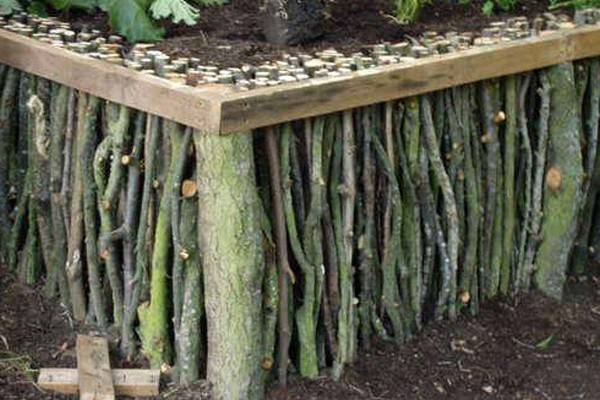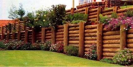 Декоративни дрвени зидови израђени су од било којих клинова, дасака и других сличних празнина. Велике потпорне конструкције уграђују се од вертикално или хоризонтално распоређених трупаца. Испод конструкције се копа ров дубине једнаке половини висине надземног дела. Дно је прекривено слојем песка од 100 мм и рушевинама од 150 мм. Тај део трупаца који ће бити у земљи обрађује се битуменом, а затим спушта у ров. Трупци се међусобно извлаче жицом, спајалицама, ексерима, а ров се сипа бетоном.