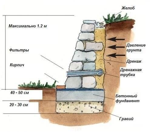 Да би се обезбедила боља стабилност потпорног зида, помаже постељина од ломљеног камена или шљунка.