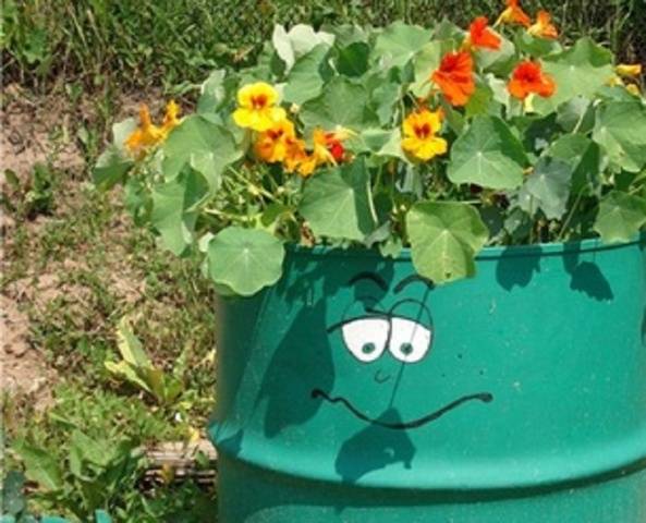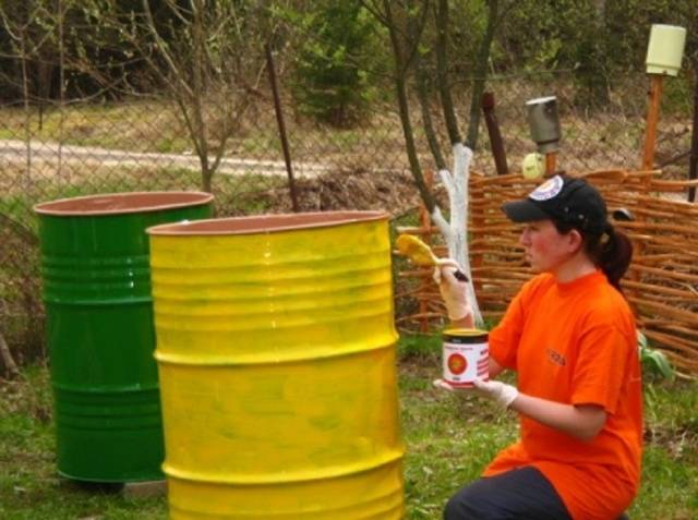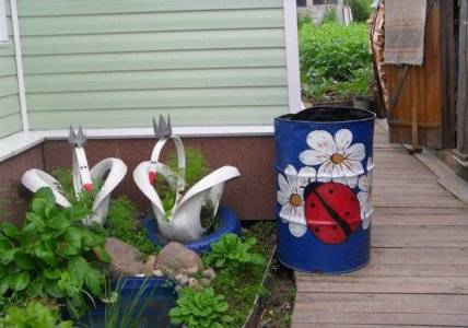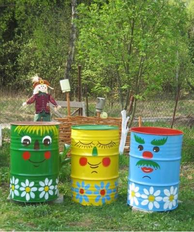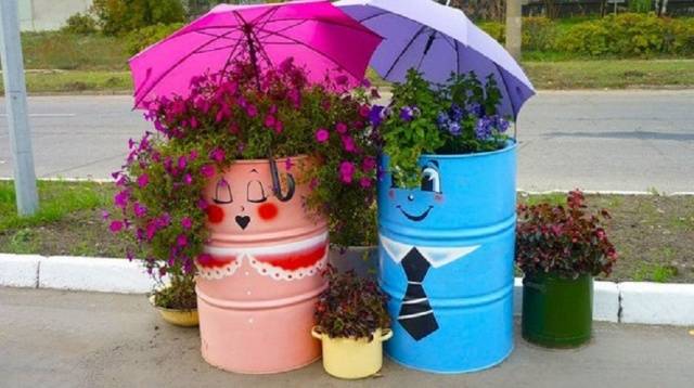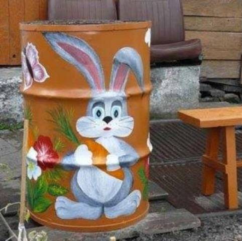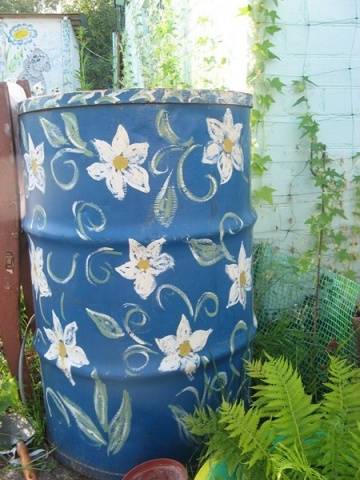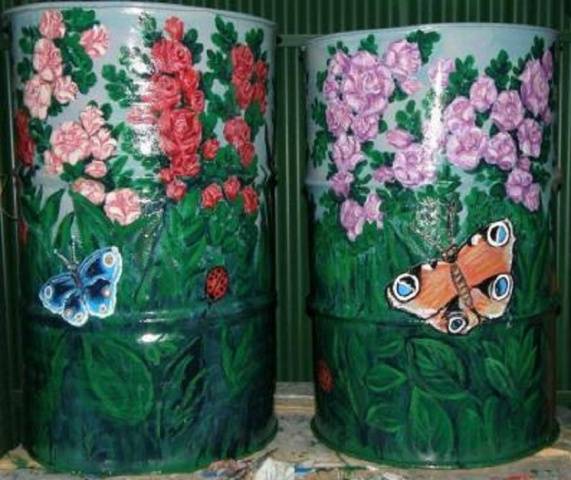 Најчешће су то старе зарђале бачве које су скоро одслужиле своје време. Али, чак и контејнер за намакање траве („зелено“ ђубриво) може бити врло оригиналан. Најлакши и најприступачнији начин је бојање.