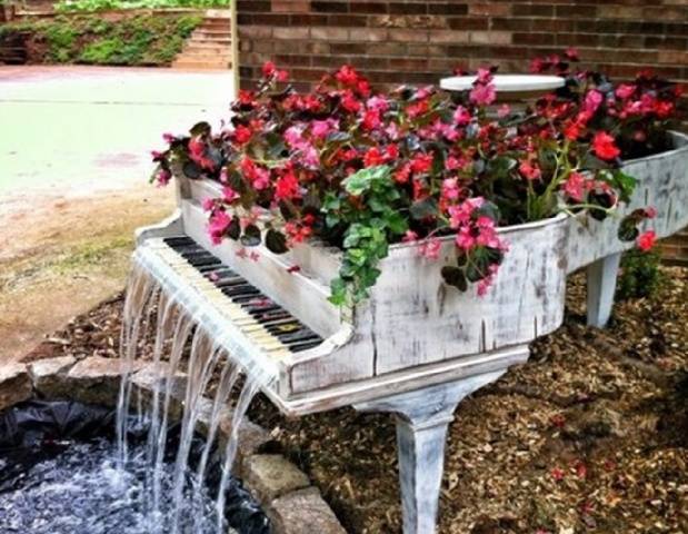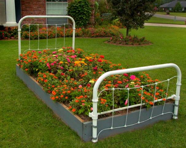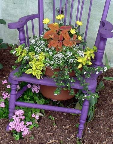 Веома профитабилна креативна опција за украшавање летње резиденције. Намештај са цвећем може заузети пуно простора на локацији. То омогућава победу над простором без посебних трошкова. А када желите да промените украсе врта за дачу, не морате ништа демонтирати. Само преместите стари намештај на друго место или промените декор. Шарене фотографије помоћи ће да се реализују такве идеје.