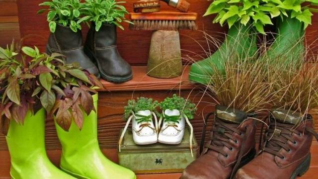 Комбинација ципела и чизама за све чланове породице украсиће трем или травњак боље од најмодернијег елемента. Такви украси за летњу резиденцију изгледају врло стилски.