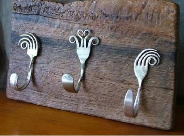 Овде ће наћи користи и старе кашике и виљушке. Додавањем плоче добијамо оригиналну вешалицу. Невероватна декорација за модерну летњу викендицу. На фотографији можете видети како то изгледа.