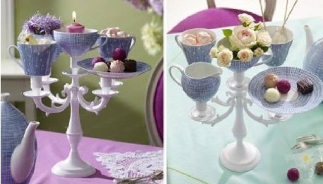Овако направљени украси за летње викендице могу се поставити на најнеочекиванија места - на обалу резервоара, на клупи у башти, на столици, дуж ограде, стакленика и баштенских кревета.Било које место постаће светлије и забавније. Често се на дачу изнесу стари сетови за чај, који или нису у моди или су већ поломљени. За летњу резиденцију од њих није потребно правити украсе за башту. Одлично решење било би стварање композиције за дом. Ако се шоље, тањири или бокал за млеко поставе на стари свећњак, онда ће таква декорација трансформисати собу.