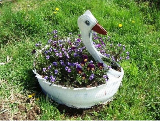 Таквог материјала има у било којој породици. Ако, ипак, то није довољно, онда ће вам сигурно помоћи пријатељи који немају летњу резиденцију. Ово су најбоље саксије за ваше омиљено баштенско цвеће. Таквим дизајнерским занатима можете украсити не само игралиште, већ и ограду, клупу, трем. Чак и на травњаку, таква декорација ће изгледати врло импресивно. Напуштена, од свих заборављена ципела у којој је расло цвеће. Деци се ова идеја заиста свиђа.
