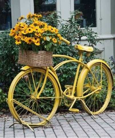 Да бисте креирали украсе у земљи, можете користити старе кофере и кишобране. Плутајући цветни кревети створиће светла острва у рибњаку или реци и додати романтизам. Фењери од лима и метала учиниће вашу шетњу стазом фантастичном. Чак и стари покварени бицикл трајаће дуго. Таква декорација за летњу резиденцију, уопште, не захтева трошкове.