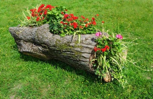 У старој викендици или након грађевинских радова на новом месту морају постојати сече трупаца или пањева старих стабала. Не журите да баците тако вредан украсни елемент. На сајту можете направити креативне украсе. Да би се тако неочекивани лонци за летњу викендицу показали оригиналним, мораћете мало да порадите на томе. Изаберите пањ без знакова пропадања и болести. Цвећу је потребан простор, па се језгро уклања. То се може учинити помоћу различитих алата. Учинит ће јигсав, пијук, бушилица, обични чекић и длето. Зависно од величине пања, овај поступак траје прилично дуго. Кора се не уклања, већ се третира антисептичним и антимикотичним раствором. Такође морате обрадити језгро како бисте заштитили цвеће у земљи од болести. Погодан контејнер се убаци унутар пања и земља се покрије. Ако се тло одмах стави у шупљину пања, брже ће се срушити. Гранично цвеће ниског раста, вртно грмље, чак и смрека погодни су за садњу у саксији. Главна ствар је посматрање пропорција између биљака и пања. Ваша баштенска декорација је спремна. Фотографија приказује трансформисани пањ.
