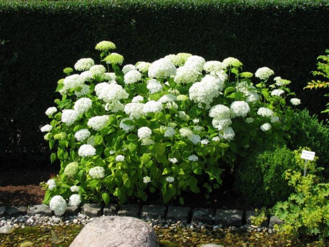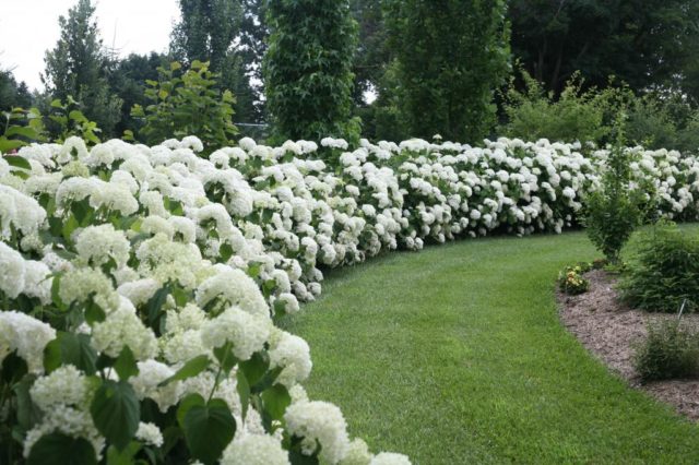 За украшавање врта, бела хортензија се користи врло често, изгледа изузетно импресивно на позадини летњег зеленила. Грм се користи за: