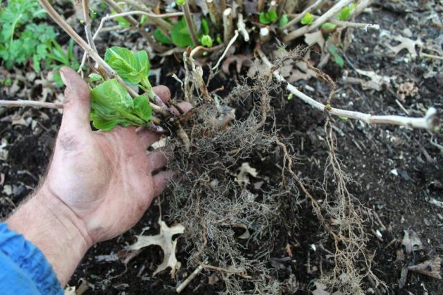 - Поделом грма. Метода је погодна за одрасле биљке са развијеним коријенским системом, на пролеће се бела хортензија ископа и подели на 2-3 дела, а затим засади у складу са стандардним алгоритмом у различитим областима.