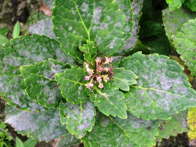 - хлороза, болест се развија на вапненастим земљиштима и са недостатком гвожђа у тлу, листови хортензије почињу да жуте и прерано опадају;