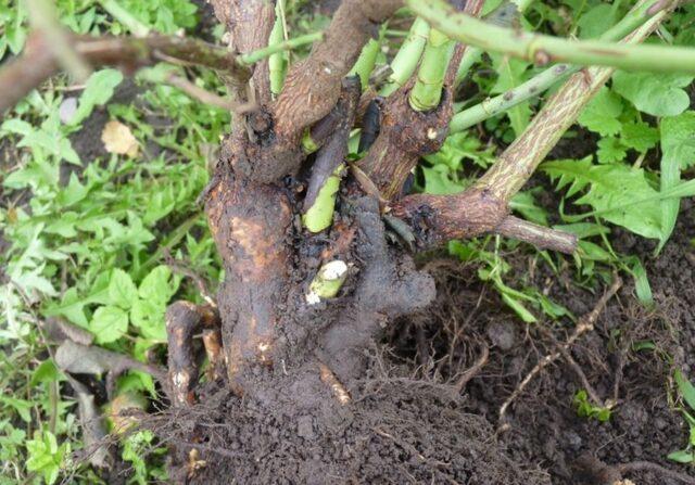 - Бели ружичасти бокови се ископају из земље, тло се унапред пролије водом како би се лакше извукло грмље.
