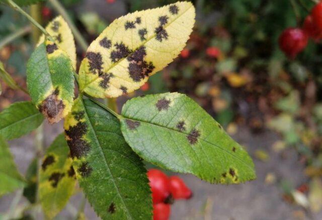 - црна мрља - гљивична болест доводи до појаве смеђих, готово црних, заобљених мрља на лишћу, које се на крају претварају у некротична подручја.
