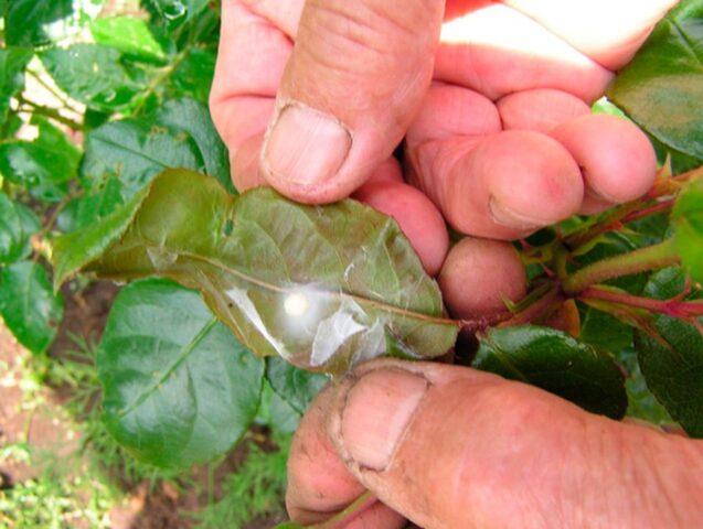 Лисната глиста креће се према шипку са оближњих воћака или од ружа