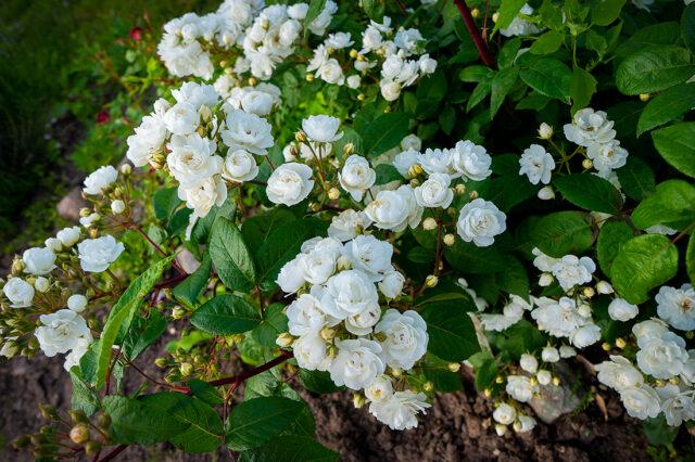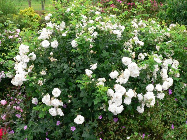 Бели шипкови у врту изгледају спектакуларно поред осталих цветних грмова и вишегодишњих биљака. Можете га садити: