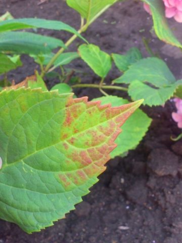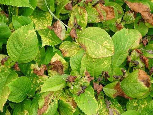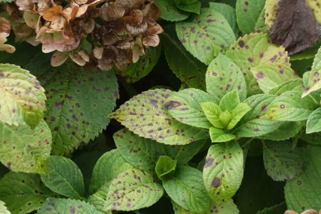 У неким случајевима, када је хортензија болесна, на лишћу ће развити смеђе мрље. Постепено покривају површину целе биљке.
