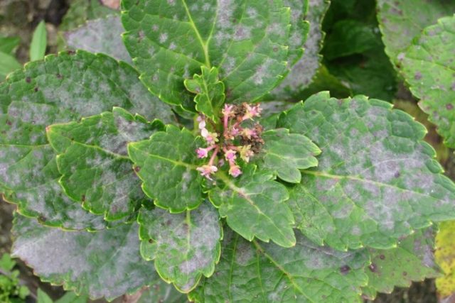 Једна од најчешћих гљивичних болести хортензије. Гљива брзо инфицира лишће, стабљике и корене цвета. Конзумирајући важне супстанце, потпуно лишава биљку исхране, од које може да умре. Претежно заражава хортензију у пластеницима. Вртни или собни усеви пате од тога ређе.