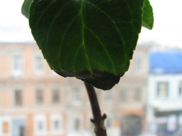 У случају оштре промене температуре или повећања влажности, на лишћу се појављују капљице воде, након чега почињу да постају црне.