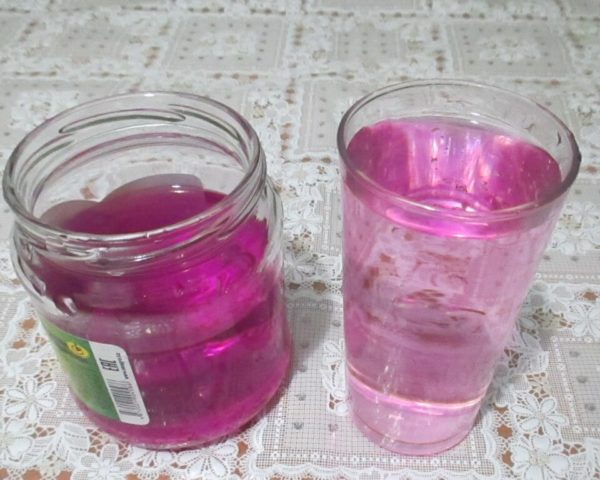 Врло често је хортензија оплођена калијум перманганатом, али овде је важно да не прекорачите дозвољене норме. Раствор не сме бити концентрован - само неколико кристала калијум перманганата у канти воде. Ако га промешате, требало би да постане благо ружичасто.
