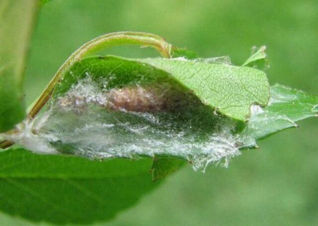 Упечатљив знак лисне глисте је деформација лишћа и паучина на њима.