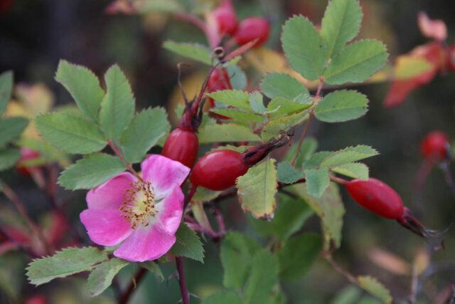 Ближе јесени, украсна биљка доноси плодове са више корена са жутим или смеђим семенима, окружена меснатом хипантијом са длачицама. На пукотини, шипкови су обично црвени или наранџасти и имају кисело-слатки укус.