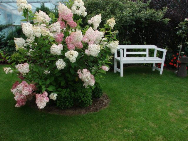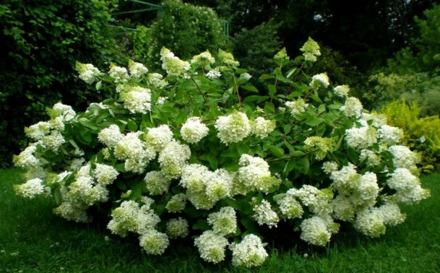 Љети се на изданцима појављују велике паницулате цвасти снежно белих, зеленкастих, ружичастих или кремастих цветова. Боја зависи од места раста и квалитета тла. Хортензија дуго цвети, траје читав топли период.