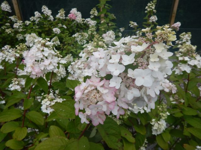 Стабљике се подижу до 1,4-1,75 м. Пречник збијеног, усправног грма је до 1,4-1,6 м, понекад и више. Жилави изданци са црвенкастом кором су јаки, под тежином великих метлица само мало нагнутих, грм се не распада. Хортензија паницулата брзо расте, за годину дана изданци се продужавају до 20-25 цм.