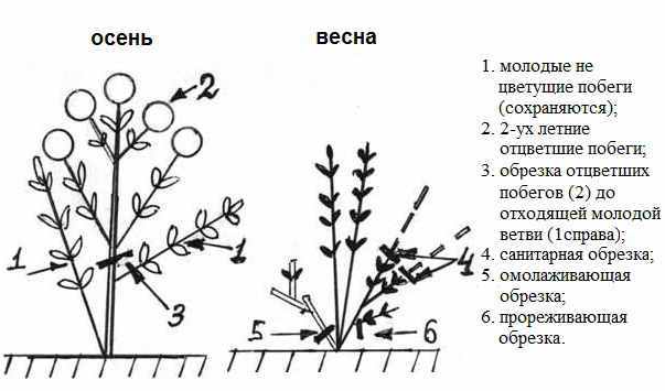 - У регионима са хладним зимама, осушени пупољци се не секу на јесен, већ пружају додатну заштиту пупољцима који се формирају. На пролеће можете очистити грмље од суве вегетације.
