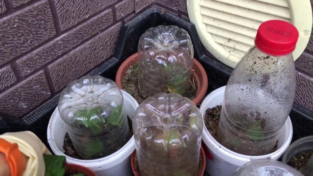 Напољу, резнице су прекривене полиетиленским или пластичним боцама, пружајући садницама услове за стакленике