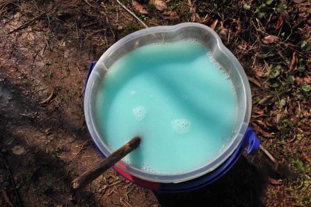Након додавања ђубрива и њиховог мешања са подлогом, јама се залије са 1-2 канте воде и остави неколико дана.