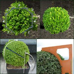 Да бисте добили строги облик грма у облику лопте, можете користити посебне оквире. Уређај се инсталира у близини пртљажника и одсече све гране које вире изван додељених граница.