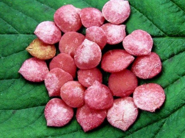 Постоје два начина за узгој садница на овај начин. У првом случају, одмах након брања бобица у јесен, морате уклонити пулпу од њих и добити семе. Затим припремите кревет у сенци грмља или дрвећа, где је тло стално умерено влажно. Да бисте то урадили, потребно је ископати подручје и додати хумус и песак, 5 кг за сваки квадрат. м. После тога направите бразде дубоке 3 цм и посадите семе у влажну земљу. Када се посаде директно на отворено тло, зими ће се природно раслојити и клијати након 18 месеци.