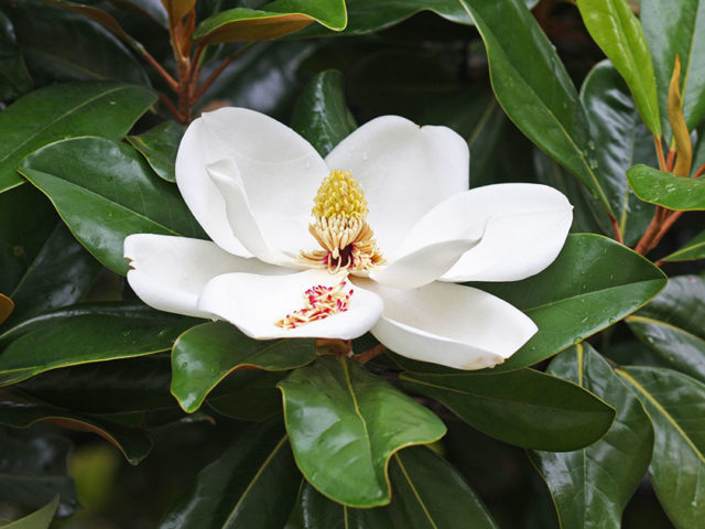 Како цвета магнолија грандифлора са великим цветовима